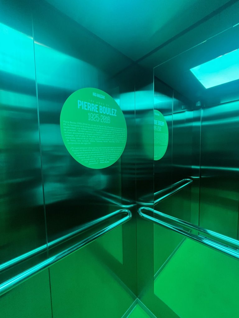 NO MUZAK construye así un discurso sobre el edificio y sobre la manera de habitarlo. La Cárcel Vieja se concibe como un organismo atravesado por el sonido: cada planta tiene su vida, pero el ascensor las conecta todas a través de pequeñas piezas de arte sonoro y músicas seleccionadas con criterios curatoriales. Hacer que una de esas estaciones esté dedicada a Boulez es una forma de afirmar que la música de vanguardia no es un territorio aislado, restringido a especialistas, sino una presencia que puede acompañar el movimiento diario de quienes visitan el centro.
